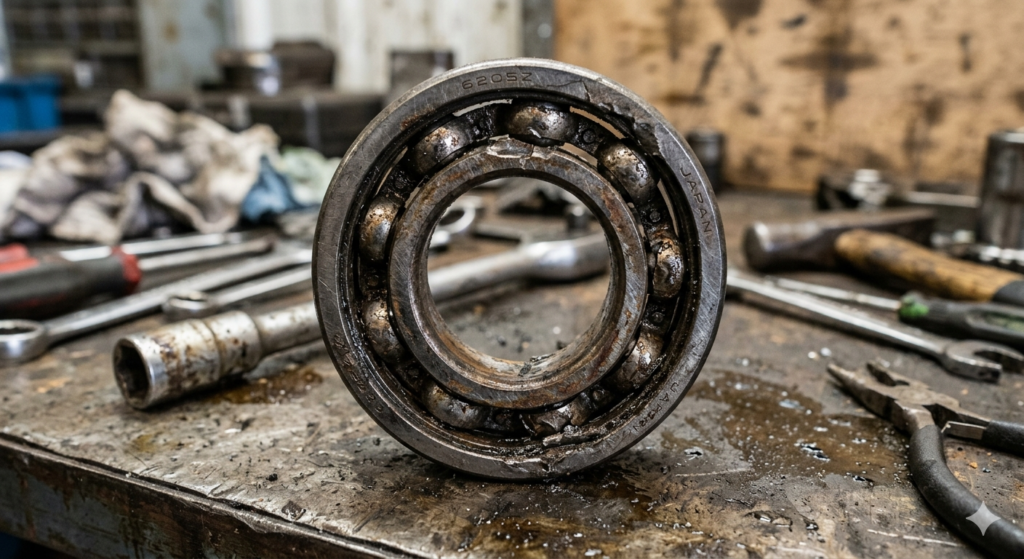 例えば軸回りの破損であれば軸を抑えているベアリングも影響を受けて歪んだり、何かを嚙みこんだ状態で回ってしまい、打痕があったりなど、変形している場合があります。